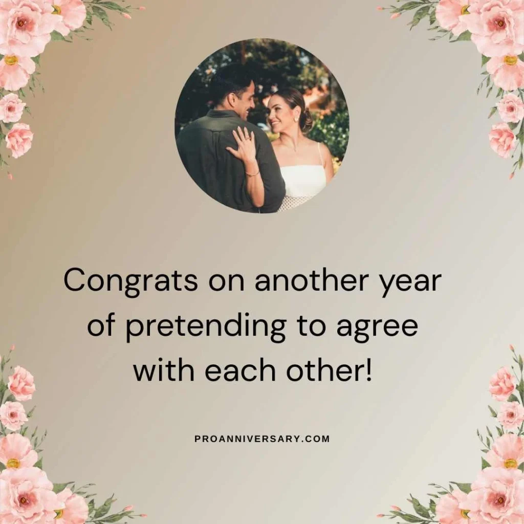 Funny Wedding Anniversary Quotes For Friends add that extra sparkle to the celebration. They tease, they cheer, and they remind your friend that marriage is a beautiful adventure… with a few hilarious plot twists along the way.